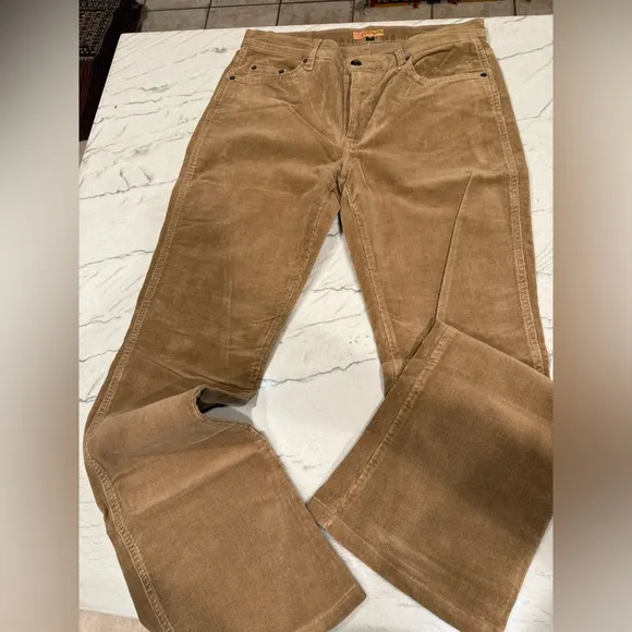 Stylish tan corduroy pants. Perfect for casual wear. In between a mid and high rise. Also, in between a bootcut and flared jean. Only work a couple of times. In great condition and very comfortable