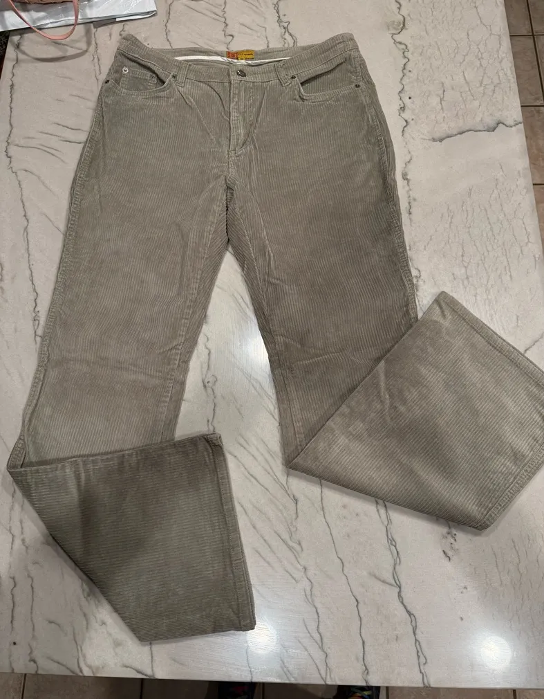 Vintage-inspired Beau Dawson wide wale corduroy pants in a gorgeous neutral taupe/beige shade ā perfect for fall/winter layering or year-round casual chic! š These feature: ⢠Wide wale corduroy texture (thick, plush ribs for that cozy, retro vibe) ⢠Relaxed wide-leg / subtle bootcut silhouette (flattering flowy fit from the thigh down) ⢠Mid-to-high rise with button fly + zip ⢠Classic 5-pocket design with rivets ⢠Stretch blend (91% cotton, 9% spandex) for comfort and easy movement ⢠Size 12 (check measurements below!) ⢠Made in China, style/cut # visible on tag Measurements: ⢠Waist: ~17ā18ā (34ā36ā around, elasticated feel in waistband?) ⢠Hips: ~21ā22ā (around 42ā44ā) ⢠Inseam: ~31ā32ā (full length, can be cuffed for cropped look) ⢠Rise: ~10ā11ā (mid/high) ⢠Leg opening: ~10ā11ā wide (true wide leg/bootcut) From a smoke-free, pet-free home. Gently pre-loved ā excellent condition with soft, broken-in feel. No holes, stains, or major fading. Super versatile: dress up with boots & a blazer or keep casual with sneakers & a sweater! šš