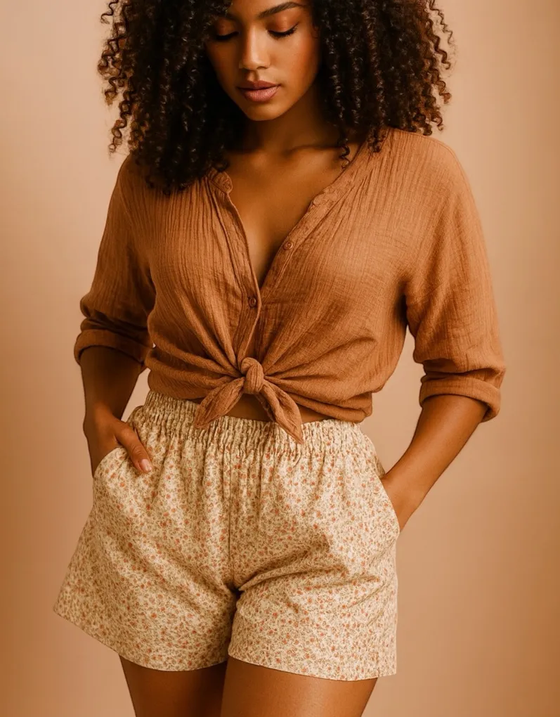 Beaumont Organic Gilma-Paige Cotton Pull-On Shorts In Pink Ditsy Floral Size XS The Gilma-Paige... Show more