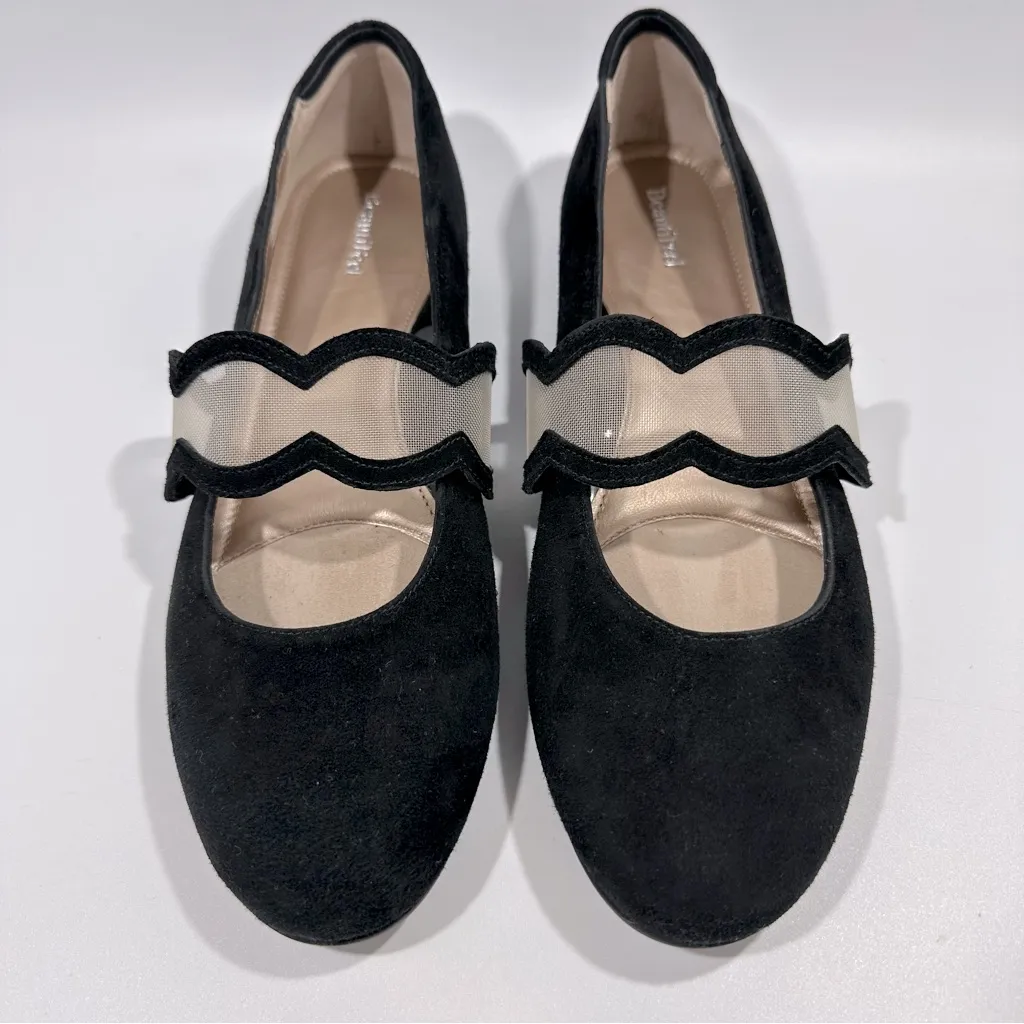Chic black suede flats featuring a unique mesh detail. Perfect for any occasion. Great brand - known for style & comfort. These are in excellent used condition. Very light typical wear - no damage or flaws. Feel free to ask any questions & consider bundling with other items from my closet for extra savings. 5I #suede #leather #ballet #flat #dress #comfort #goth #witchy #mesh #office #mature #festival #fall #winter #academia #neutral #whimsigoth
