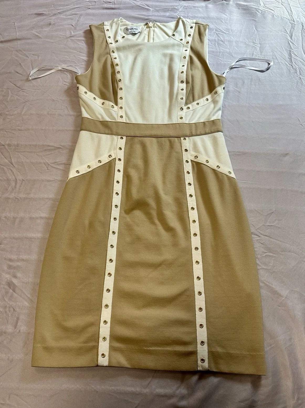 . This stylish dress features gold-tone eyelet rivet detailing along the seams, adding an edgy yet s... Show more