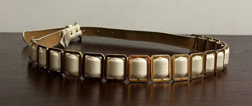 Chic women's belt by bebe. Cream squares with gold accents. Perfect for elevating any outfit.