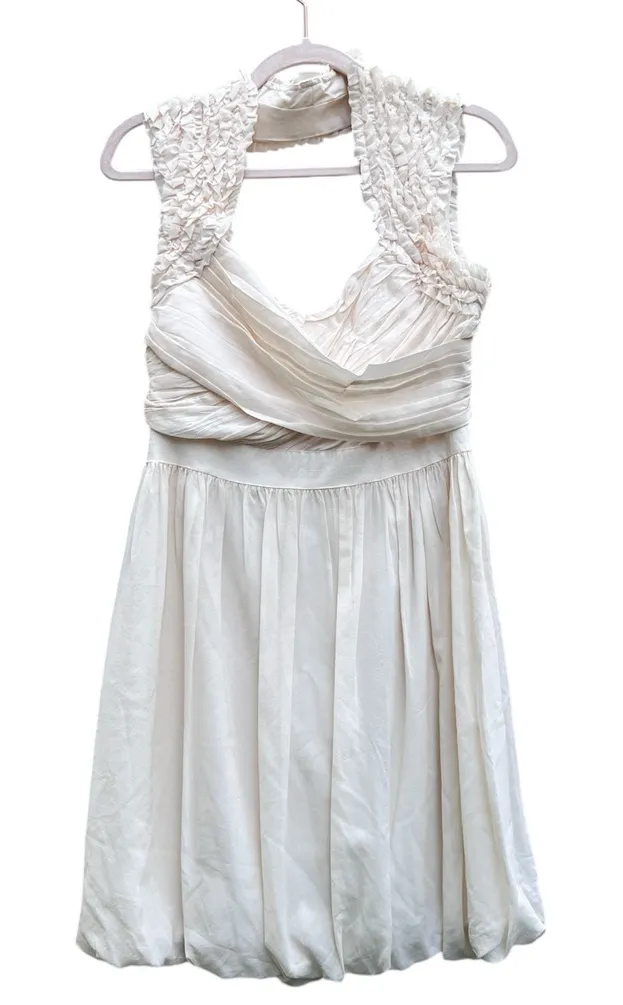 Bebe Cream Draped Silk Mini Dress Large Y2K BBL Skirt Cocktail Party New with tag Sleeveless Lined... Show more
