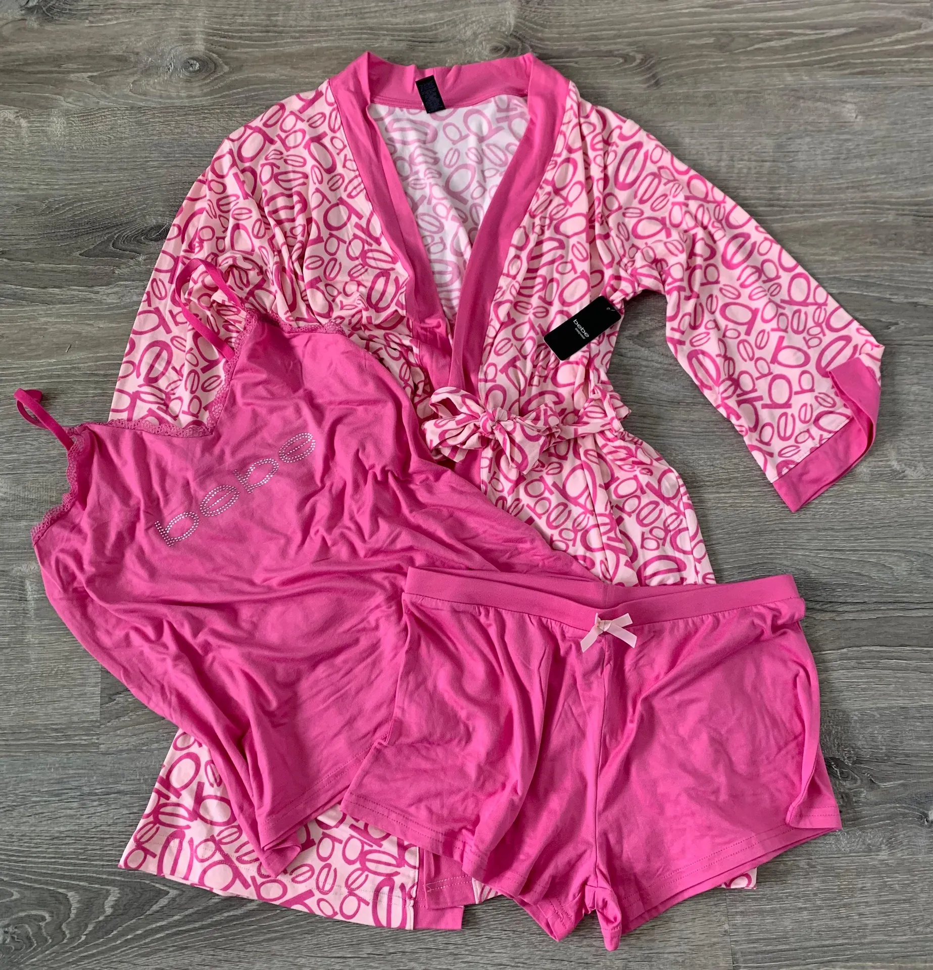 • brand new with tags • comes with robe, cami, and shorts • super soft • stretch material • made i... Show more