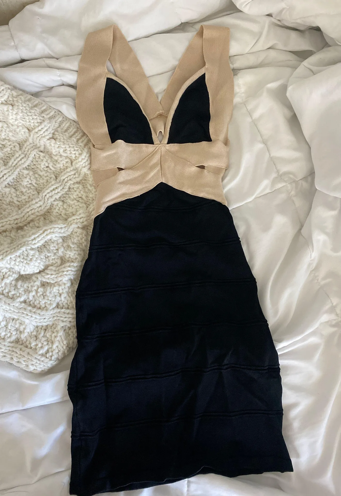 Super cute thrifted vintage 90s-2000s dress Open back Black&beige Super stretchy/comfy Fits XS-S