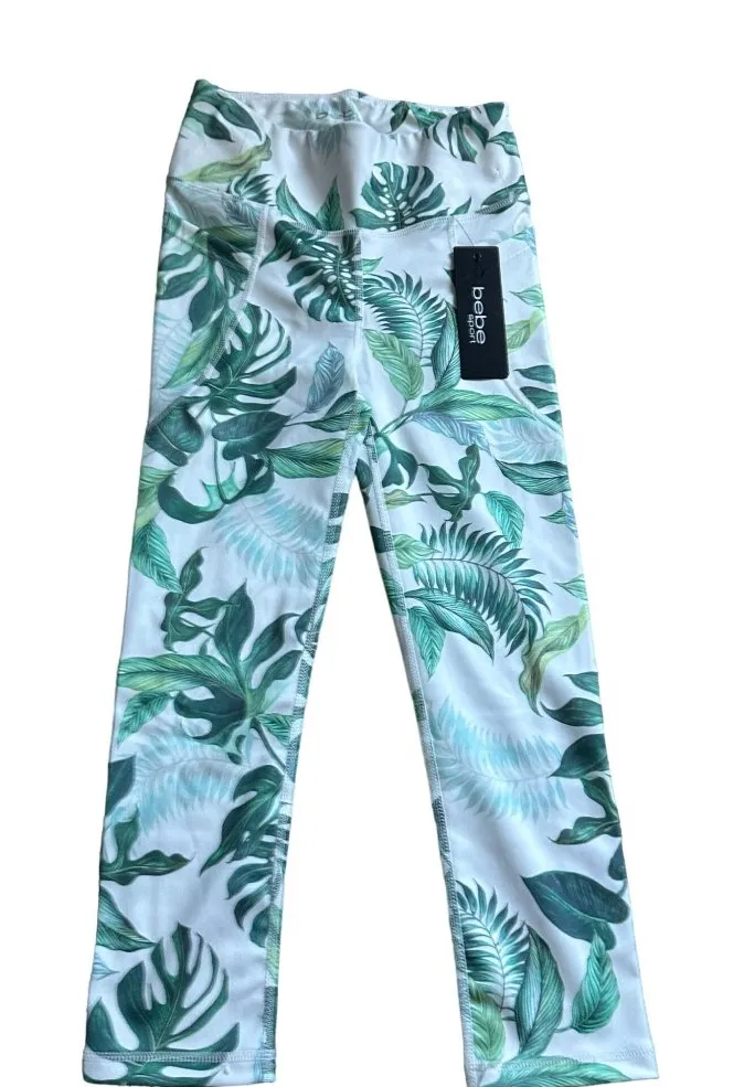 BEBE Sport Palm Leaf Tropical Crop Leggings size S are new with tags. They feature a vibrant tropica... Show more