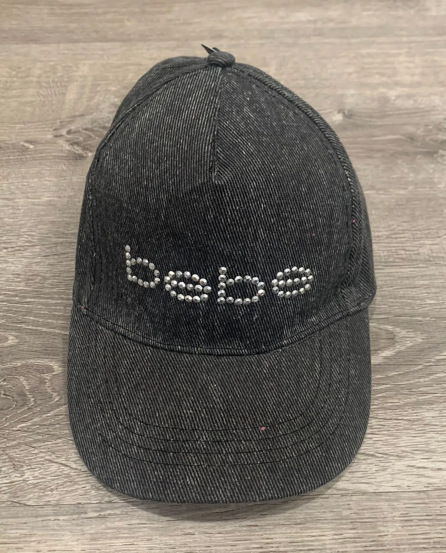 BEBE Sport Rhinestone Logo Baseball Hat/OS/NWT Cap Black Washed Denim Fabric Questions? Leave a com... Show more