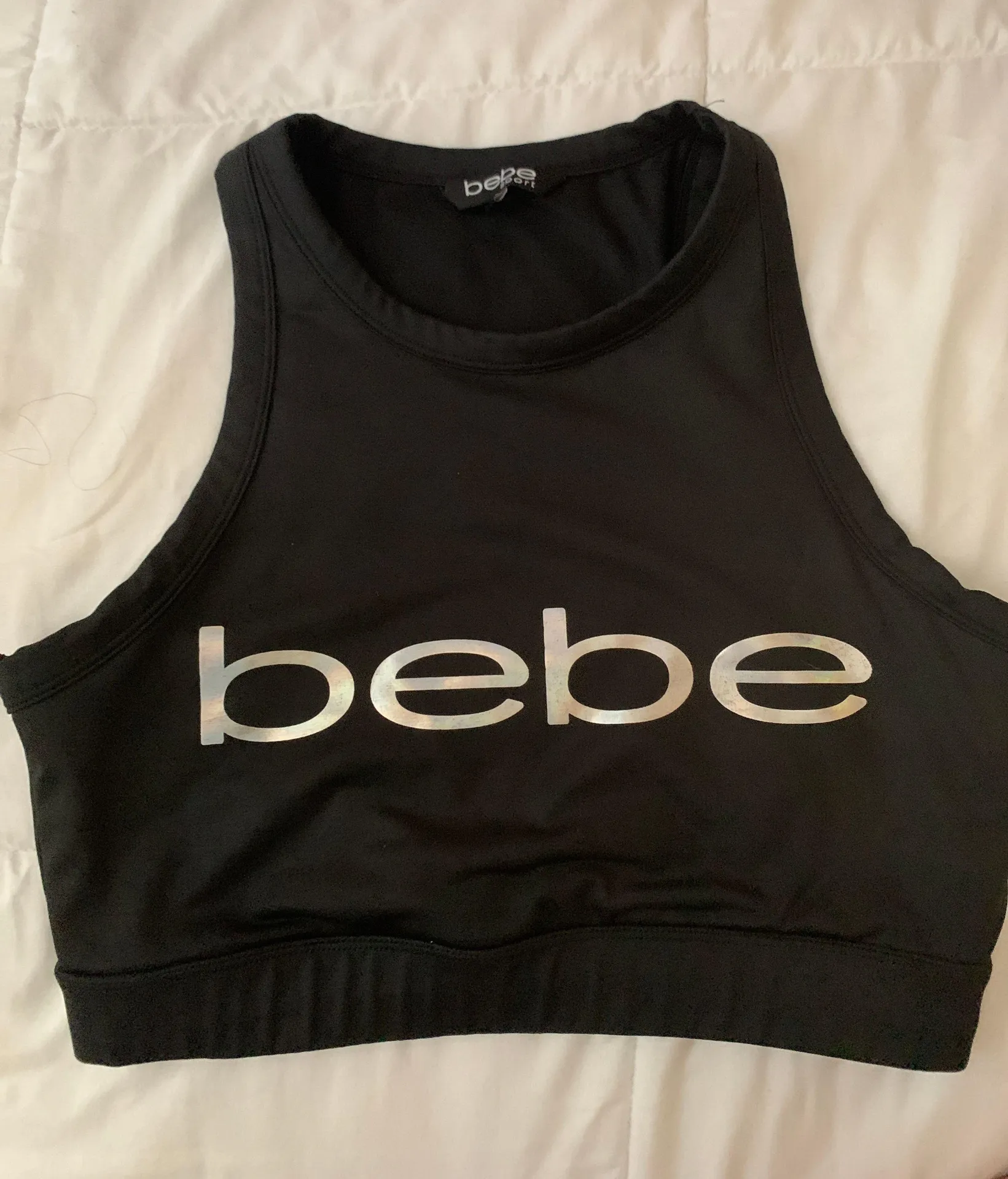 Size L Black Bebe sports bra Fits a little tight, but is very comfortable Excellent condition