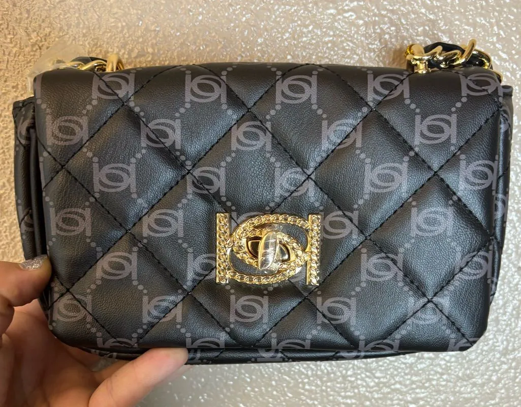 Elevate your style with this chic Bebe Women's Liv Monogram Crossbody Bag. The black polyurethane ex... Show more