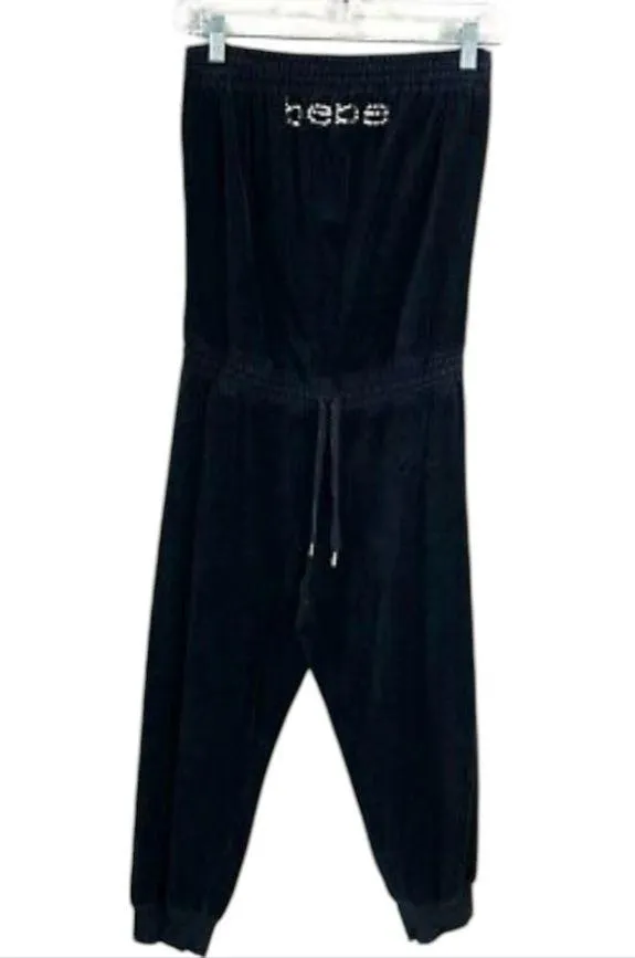 Y2K baby WomensXS TP Black Velvet Jumpsuit Rhinestone Spellout Strapless