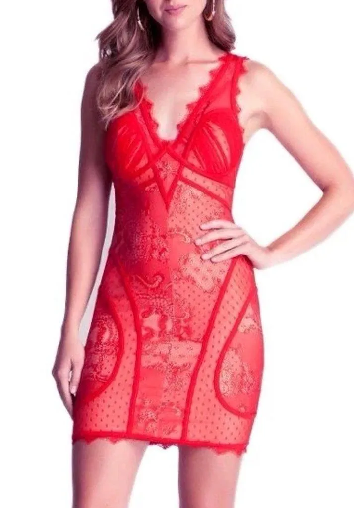 Vintage Y2K Sexy romance red dress valentines Red nude lace Deep v plunging neckline Lingerie st... Show more