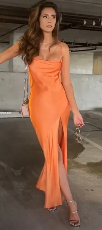Bec & Bridge Bec + Bridge Annika Gown Maxi Dress in Orange Size US 8 A beautiful orange makes this mesmerizing slip dress by Bec & Bridge featuring an exposed back and a slit. Orange satin (100% Viscose). Cowl neck. Zipper closure. Color may vary in different photos/lighting, etc. Please kindly note that sales are final - no returns, exchanges, or cancellations. In pre-owned condition - some snag/runs in fabric Thank you for your interest! Please let me know if you have any questions. Check out my other listings and save on shipping when you bundle!