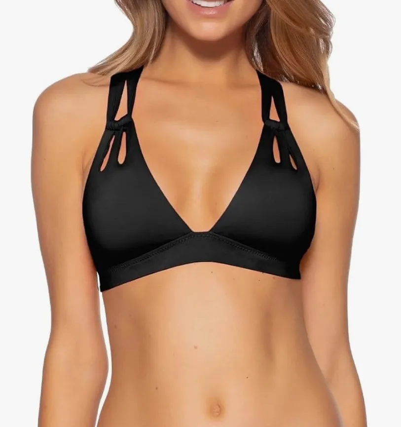 Dive into elegance with the BECCA Black Triangle Bikini Top, featuring a minimalist design with a pl... Show more