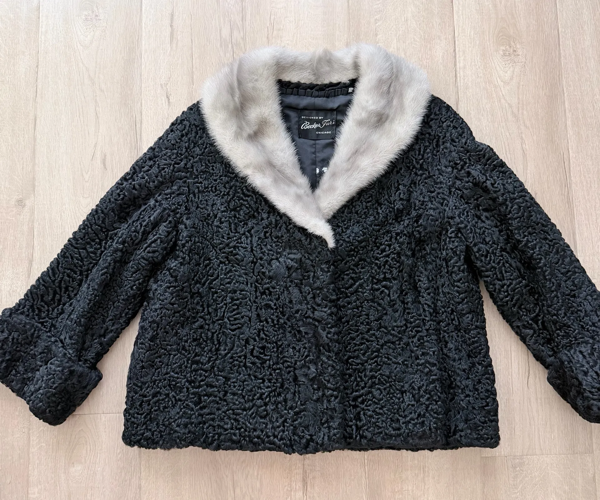 Vtg Persian Lamb Black Fur Jacket With Silver Mink Collar Short Coat Jacket M/L Size M - $258 - From MyArt