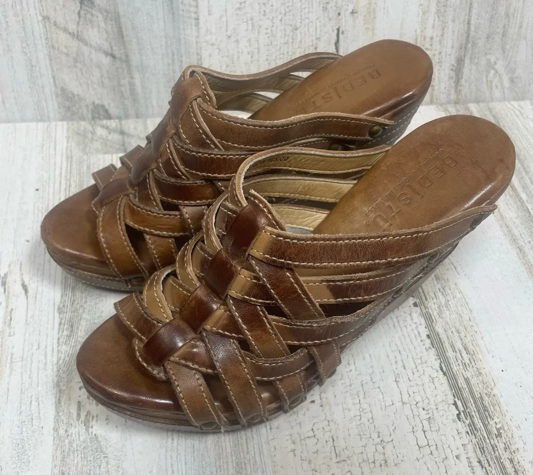 Bed Stu Gina Distressed Leather Wedge Sandals Brown Pecan Size 7 Studded Weaved - $85 - From Melissa