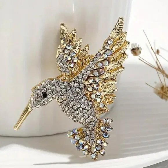 Bedazzled Hummingbird w iridescent & clear crystals Silver & gold Brooche pin - $27 New With Tags - From Barbara