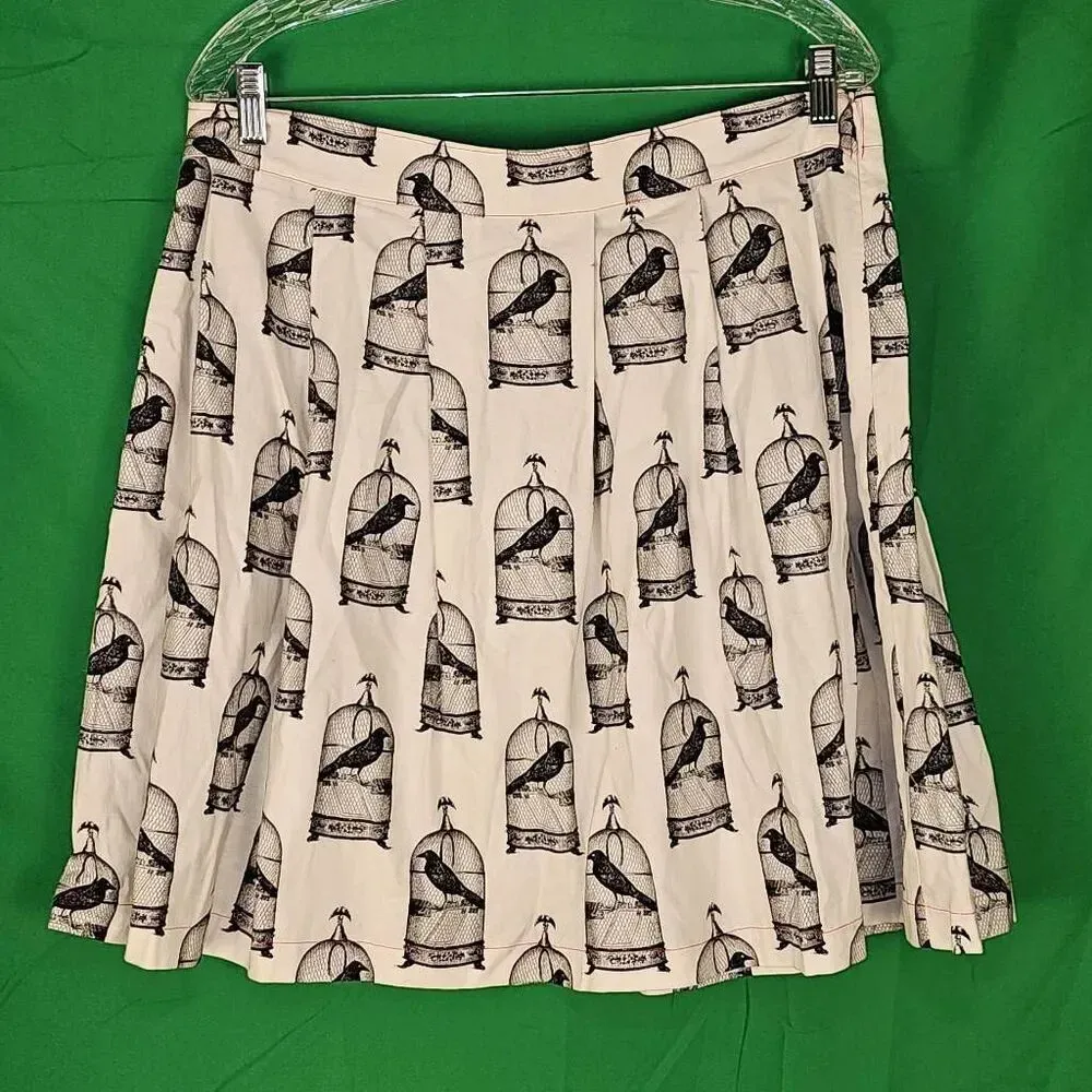 Beebop & Wally Womens‎ White Black Raven Pleated Skirt Large - $34 - From Pamela