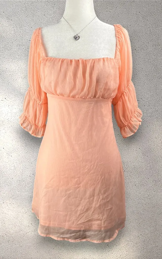 beige botany peach mini dress 🍑 lightweight + airy with that soft, romantic babydoll silhouette. sheer overlay with a full lining and the prettiest puff sleeves + tie-back detail. excellent preloved condition, no flaws noted — dreamy for dates, picnics, or any cottagecore moment. ✧ women’s size medium ✧ sheer outer + full lining, lightweight flow ✧ sweet babydoll fit with tie-back + puff sleeves Tags ☆ beige botany, peach dress, cottagecore, coquette, fairycore, babydoll mini, romantic style, soft girl aesthetic, spring picnic, feminine chic