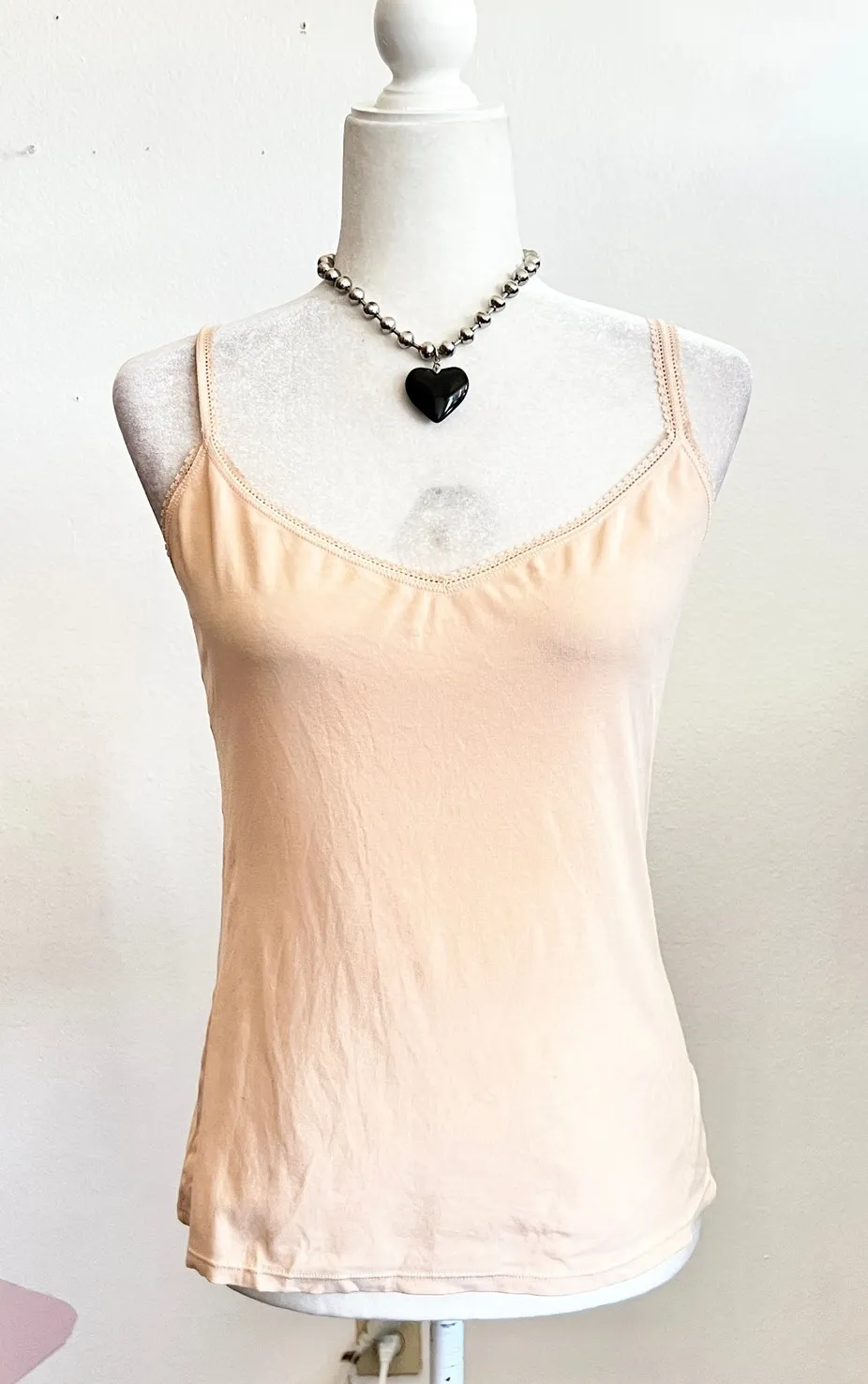 Beige Lace Trim Tank Top Dreamy 2000s Fairy Coquette 90s Retro Medium Tan - $25 - From Kenia