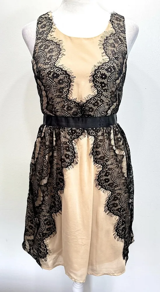 Doe & Rae Beige Semi Sheer mesh Sleeveless Dress with Black Eyelet Fringe Trim and ribbon waistband. Zipper back closure. Fully lined. Women’s size small Brand new with tags Clean, smoke free home and studio. Five star seller. Super fast shipping! Bundle 2+ items for 20% off! Measurements 16.5” armpit to armpit 34” length *measurements are approximate wedding, special occasion, banquet, dinner party, awards ceremony, church, feminine, classy, elegant, refined, whimsigoth, coquette girl SKU# B1757 12B