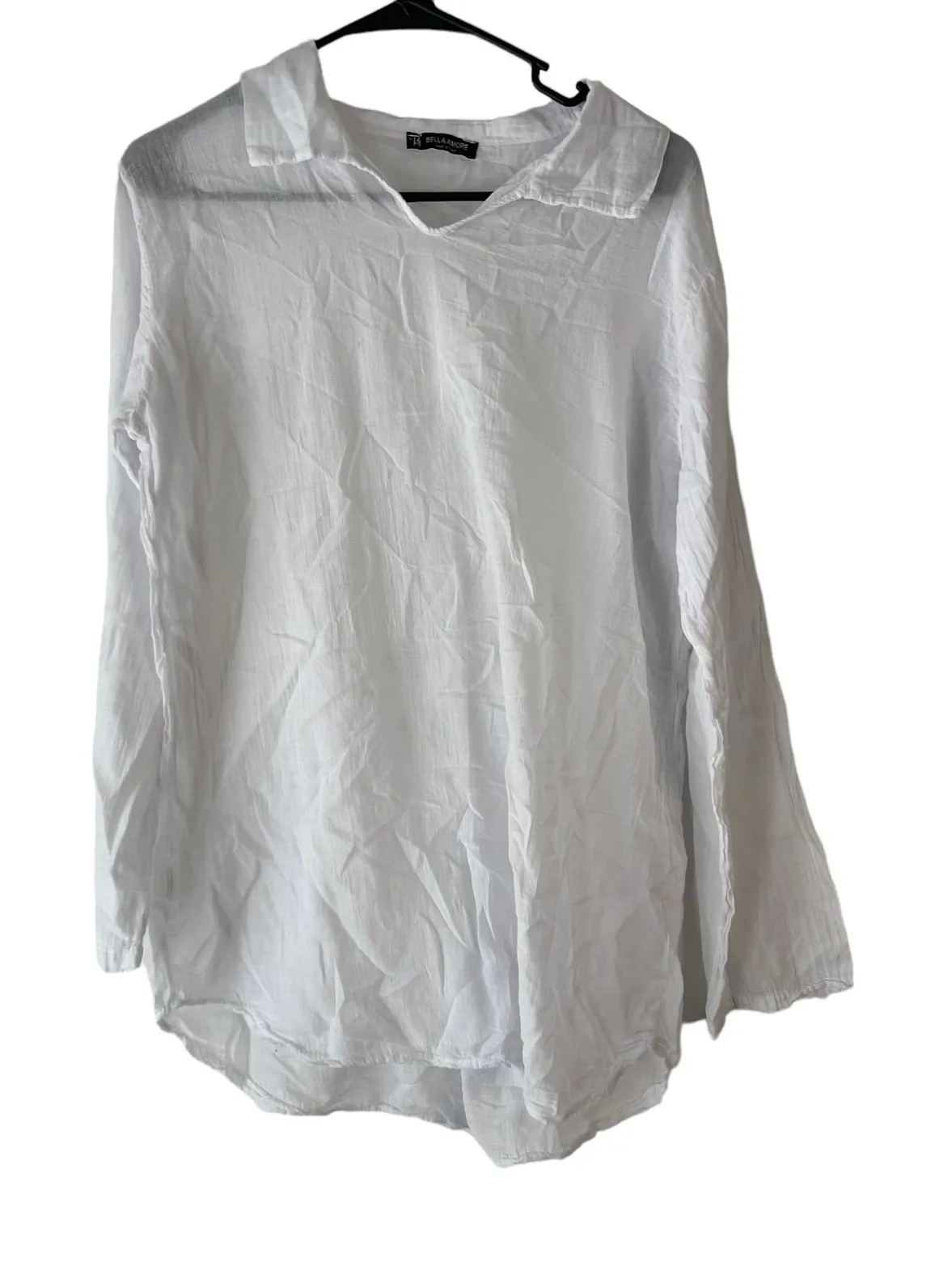 Elevate your summer wardrobe with our Bella Amore Made In Italy Women's One Size Sheer Cotton Light Weight Tunic Top, a versatile and essential piece designed for comfort and style. Lightweight and breathable feel that's perfect for staying cool on warm days, V neck and collared keeping you comfortable and fresh all day long. Item is in good preloved condition! Small Spot on sleeve shown in photo. All Measurements, and material content tags are in the photos. Pit to pit: 20" Neck to hem: 29" Thank you for your interest on an item from my shop! We ship every 1-2 business days, and appreciate you supporting our business. Tags: Summer, Coastal, Beach, Vacation, Cottage, Minimalist