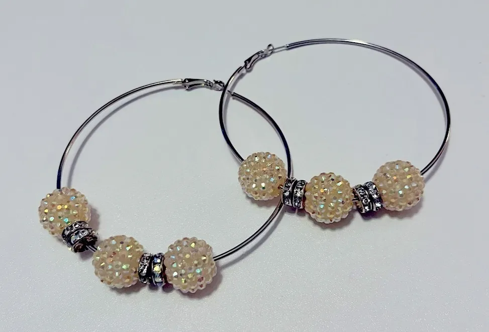 Bella Boheme Large Discoball Round Crystal Rhinestone Large Hoop Earrings Silver - $15 - From My Sisters Closet