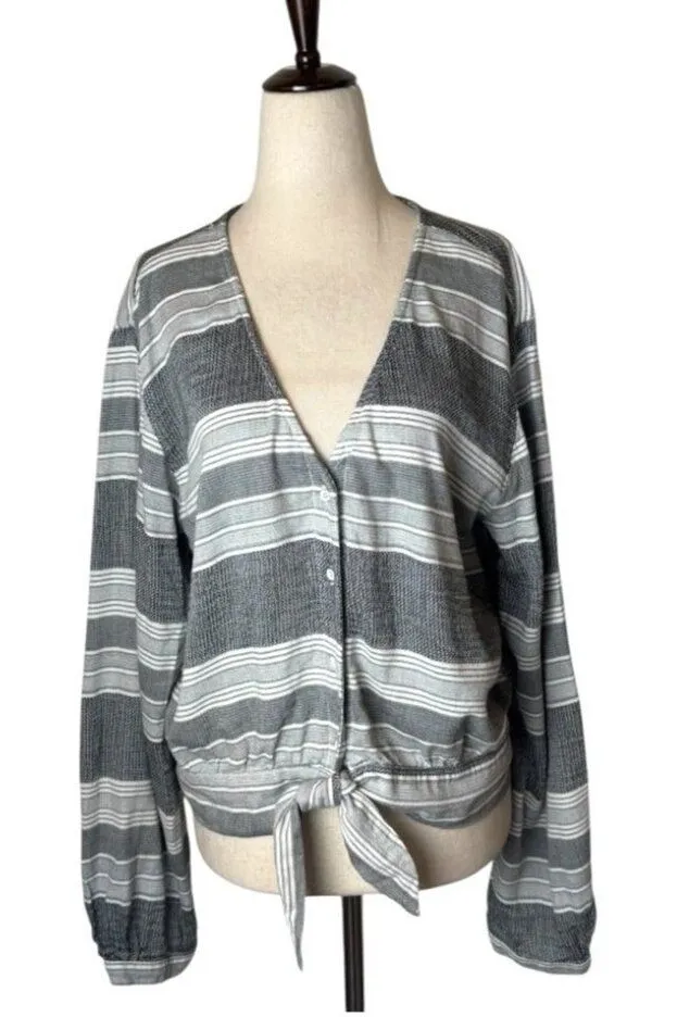 Bella Dahl Shirt Women Large Gray Black Striped V Neck Tie Waist Top Preppy Features: • V-N... Show more