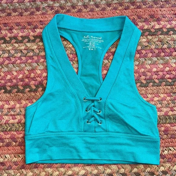 BELLA MOVEMENT TEAL BLUE RIBBED LACE UP RACERBACK SPORTS BRA SEAMLESS - $9 - From Sausy