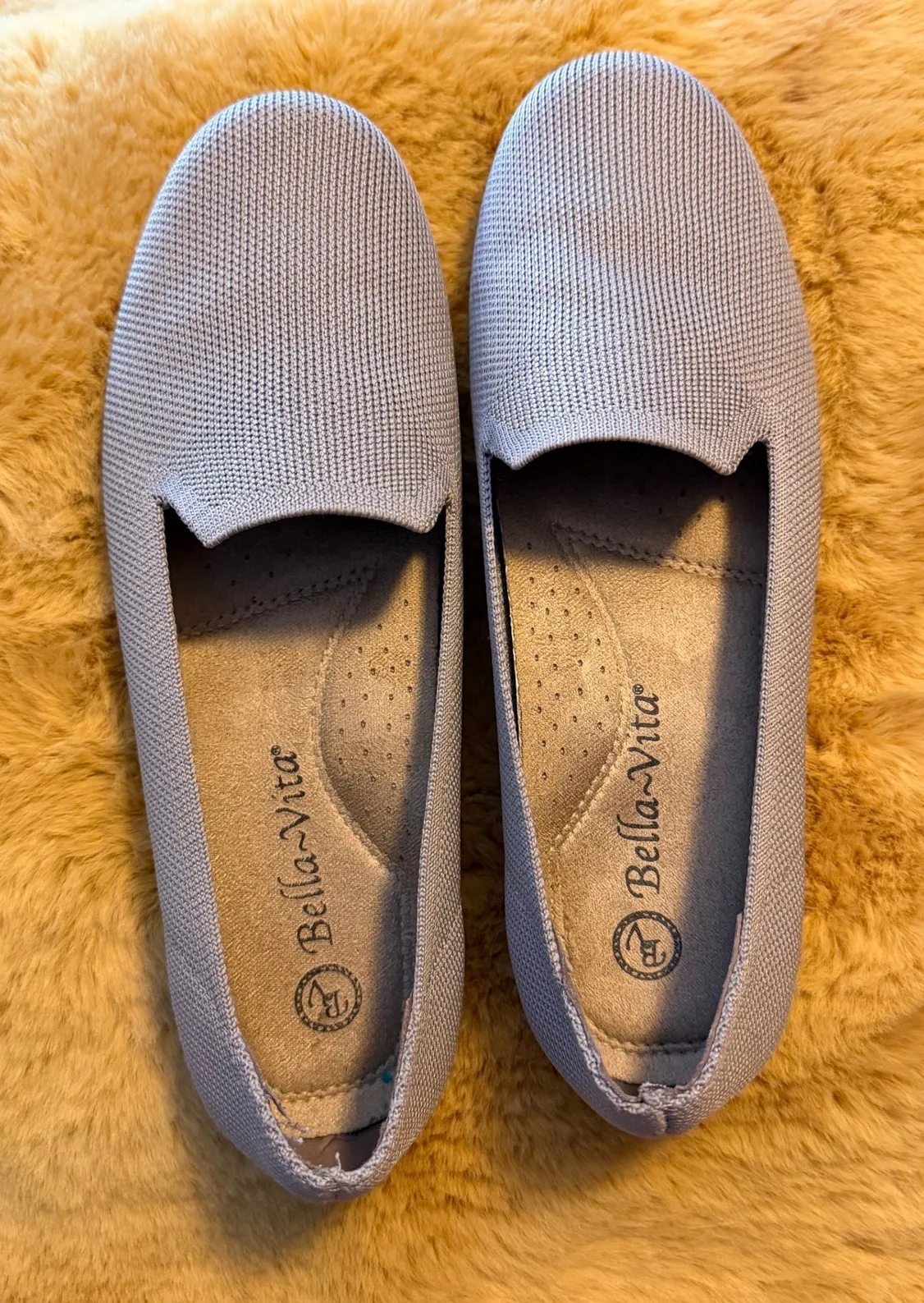 Effortless comfort meets chic style with these Bella Vita knit loafers. Slide into a world of breathable ease, perfect for days when you want to look polished without sacrificing comfort. The flexible knit upper gently hugs your foot, while the cushioned insole provides all-day support. These versatile flats transition seamlessly from a busy workday to a relaxing weekend brunch. Style: Loafer Department: Women Upper Material: Synthetic UK Shoe Size: 3.5 AU Shoe Size: 5.5 Features: Comfort, Lightweight, Cushioned, Arch Support, Stretch Occasion: Casual, Travel, Workwear Insole Material: Fabric Lining Material: Fabric Outsole Material: Rubber Type: Flat Keywords: knit loafers, slip on, lightweight, breathable, comfort shoes, casual flats, workwear, everyday shoes, travel, ballet flats, athleisure