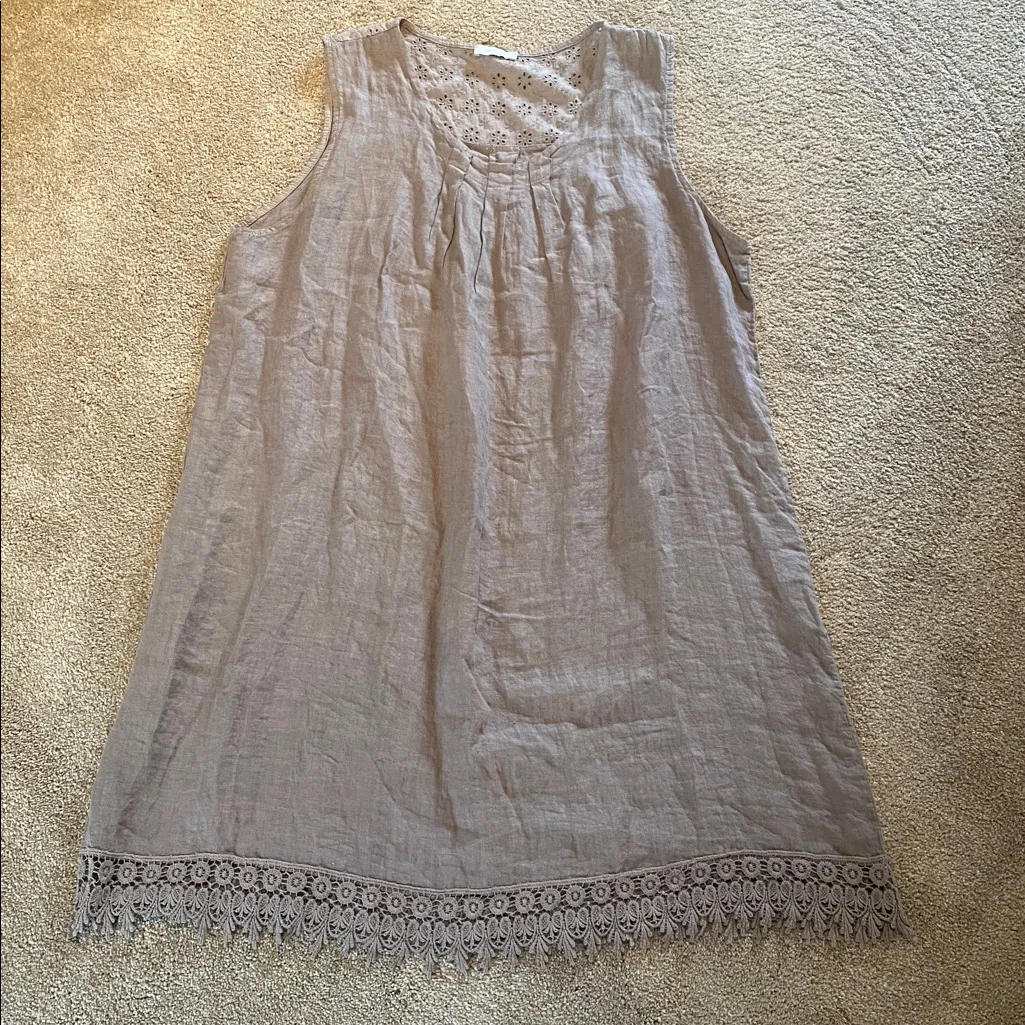 Bellambia Linen Eyelet Fringe Detail Dress Made in Italy Gray/Tan Size 2X Gray - $43 - From Lysander