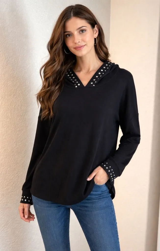 Belldini Black and Gold Polka Dot Accents Top w/hood Size L - $29 New With Tags - From Alice