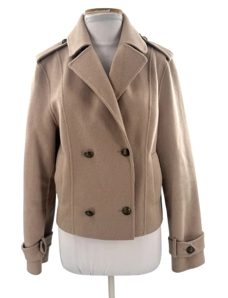 Belle & Bloom double-breasted military peacoat wool blend tan oat sz XL - $89 - From Rocked