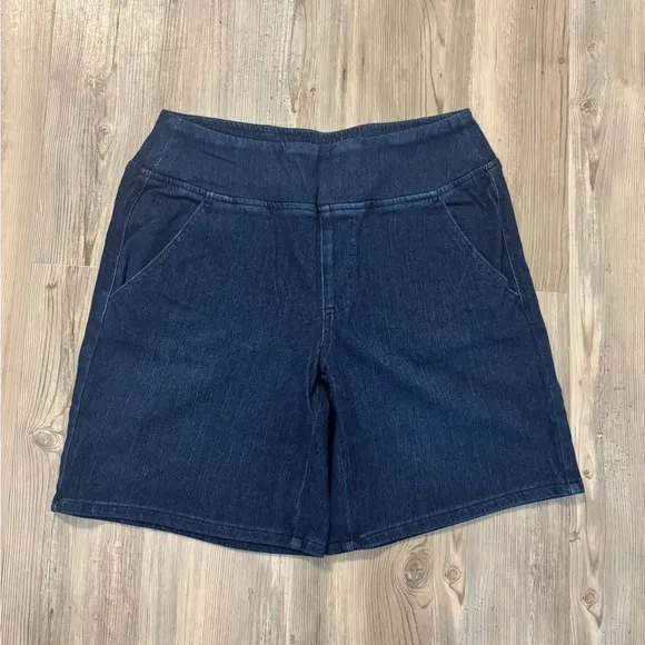 These Belle by Kim Gravel jean shorts feature a timeless classic cut in a rich blue hue, perfect for casual wear. Made from durable denim, they offer a clean and simple design that ensures comfort and style for everyday outings. NEW
