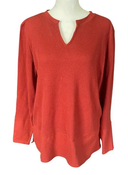 Women's Belle by Kim Gravel burnt orange long sleeve pullover top, size small. This is v-neck, stre... Show more