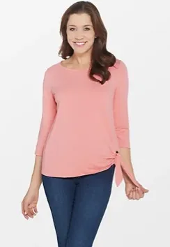 New in bag. Never opened. Perfect condition. Sold out online. Finish with flair--even on days when you're keeping it casual--with this grommet detail T-shirt. From Belle by Kim Gravel. Fabrication: TripleLuxe knit Features: circle neckline, 3/4-length sleeves, grommet and knot detail on bottom left, solid color Fit: semi-fitted; follows the lines of the body with added wearing ease Length: missy length 24-1/2" to 26-5/8"; plus length 27" to 28-3/4" Content: 58% cotton/37% modal/5% spandex Care: machine wash, dry flat Imported