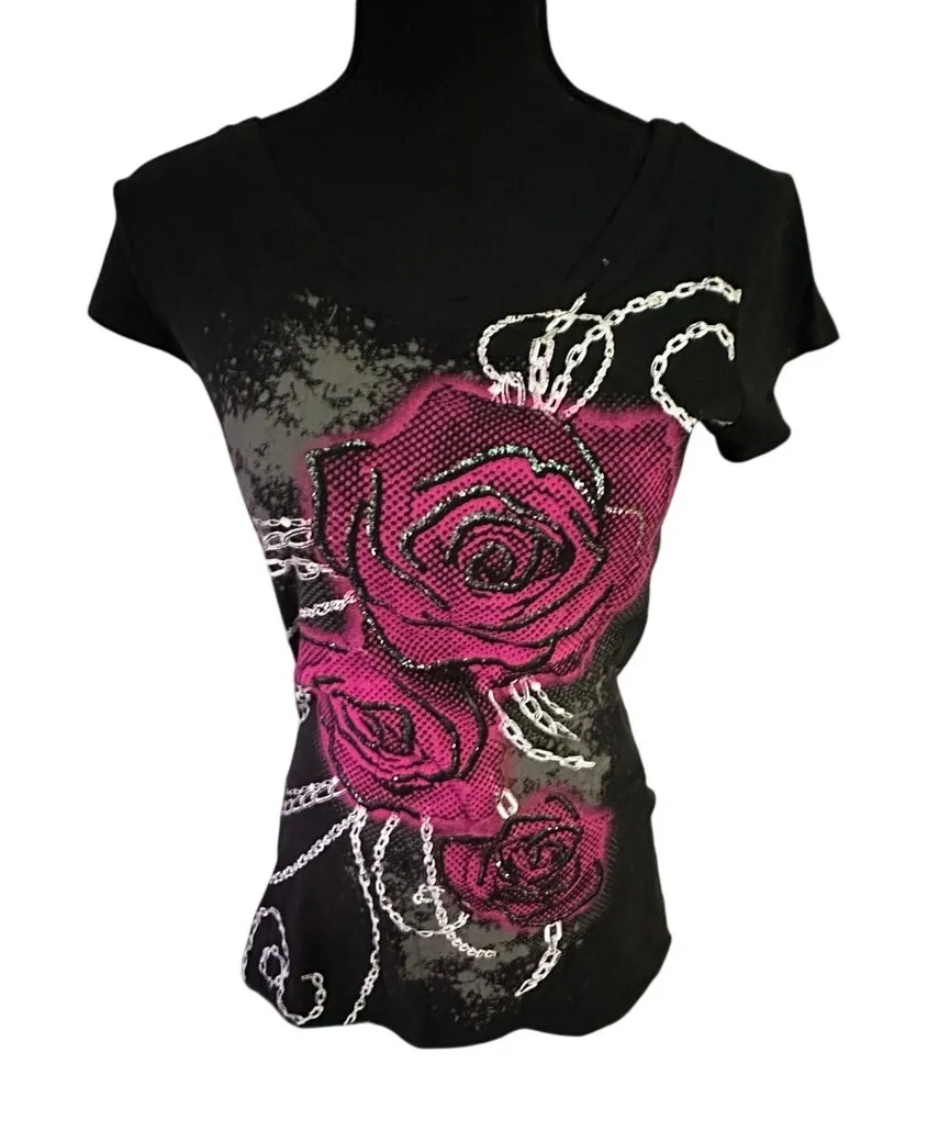 Trendy Belle du Tour black graphic T-shirt featuring a pink rose design with Y2K aesthetic vibes. Women’s size large with a comfortable, relaxed fit. Soft, easy-to-wear tee perfect for casual styling, layering, or streetwear looks. Great with jeans, cargos, or skirts for an effortlessly cool outfit. This item is pre-owned and has been gently loved before. I carefully inspect each item and will always disclose any noticeable flaws, so you know exactly what you're getting. I encourage questions—whether it’s about the condition, sizing, or anything else. Transparency is important to me, and I’m happy to provide additional details or photos upon request. I’m always open to making a deal! Reasonable offers are welcome, so don’t hesitate to reach out. Let’s find this item its new home! #BelleDuTour #Y2KStyle #GraphicTee #BlackTshirt #WomensLarge #StreetwearVibes #RoseGraphic #CasualFashion
