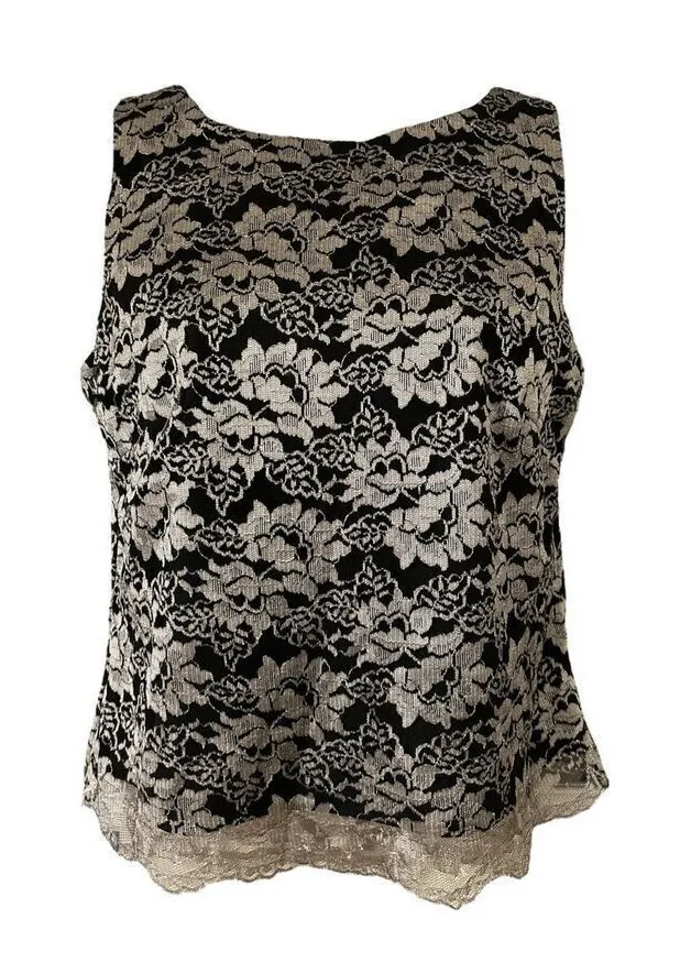 Bentley Arbuckle Black Silver Floral Lace Overlay Top Womens Size 6 Size M - $22 - From T