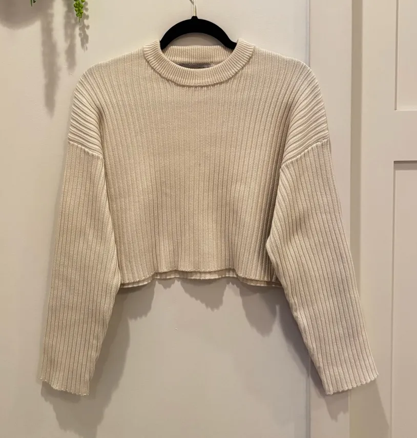 Bershka ASOS Cream Chunky Knit Cropped Long Sleeve Crewneck Sweater Womens Large - $18 - From Jena