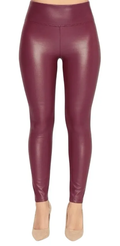 Bershka Burgundy Size Medium Leggings Faux Leather Pants High Waisted Pull On, Stretch Coating: 100... Show more