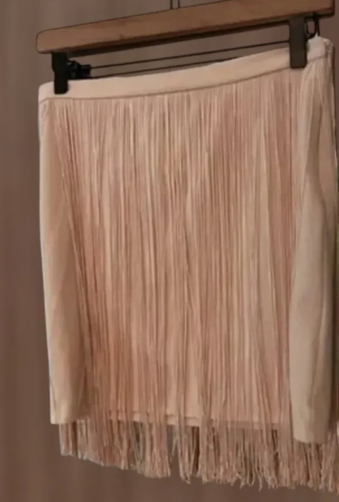 No flaws Suede See pic for measurements Turn heads with this stylish Bershka tan fringe mini skirt in size 8 (fits like a medium). Crafted from soft faux suede with full-length fringe detailing, this piece gives effortless boho meets Western-chic vibes — perfect for festivals, concerts, or a night out. ✨ Features: • Brand: Bershka • Size: 8 / Medium • Color: Tan / Light Brown • Material: Faux suede • Full fringe front and back • Hidden side zipper • Mid-rise fit, mini length 🎯 Style Tip: Pair with cowboy boots, a cropped tee, or a leather jacket for the ultimate festival or country concert outfit.