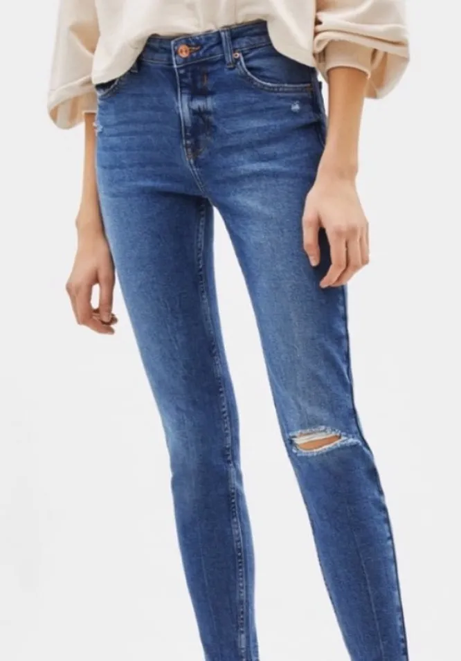Bershka Mid Rise Distressed Skinny Jeans Stretch Cotton Denim Women’s 4 Blue - $18 - From Regina