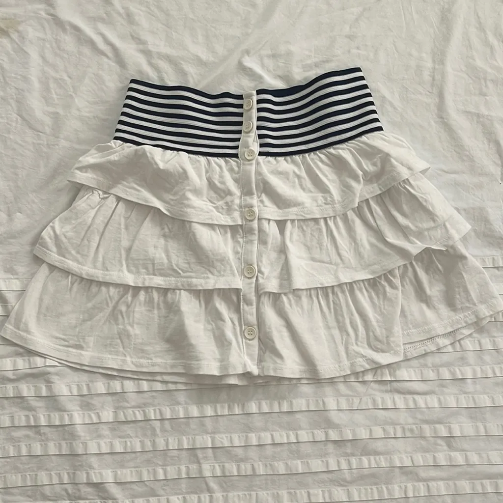 Bershka women size Small elastic waist skirt tiered stripes nautical button down Blue - $35 - From Sofia