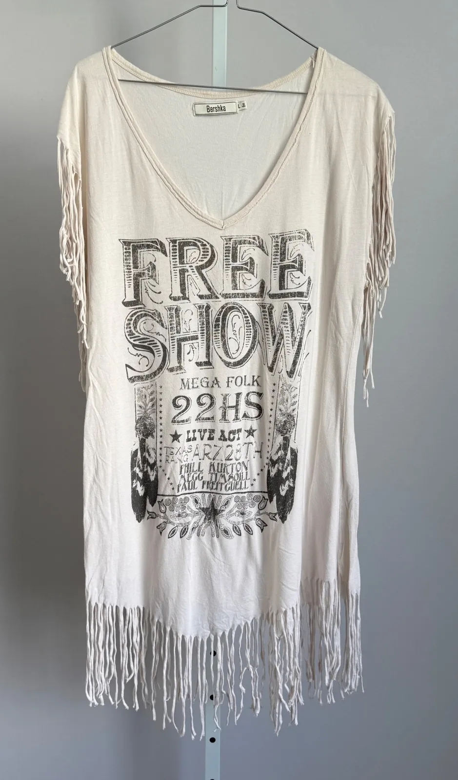 Bershka Womens Large Fringe Tunic Top Free Show Graphic Bohemian Festival Keywords: Bershka, Womens... Show more