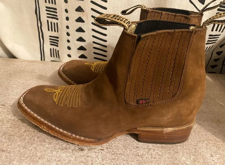 Besserro Brown Suede Chelsea Ankle Boots Western Embroidered Leather 21 Size: MEX 21 (see sole phot... Show more