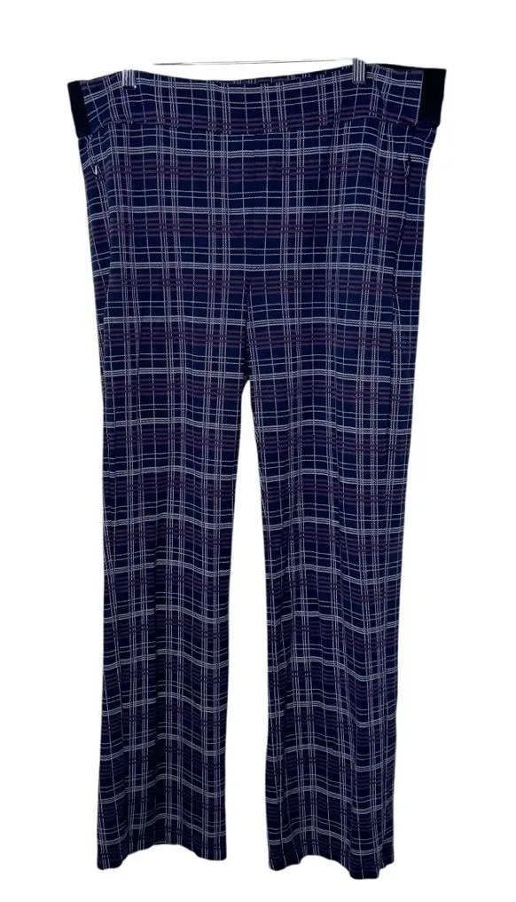 Very good preloved condition. Betabrand blue and purple plaid stretch pants. Side zip pockets. No rips or stains. Size XXL. Approximate Measurements flat: Hips 20”, Rise 11”, Inseam 29”. Betabrand, stretchy, yoga, comfortable, office, going out, casual, plaid, straight leg, seasonal, transitional