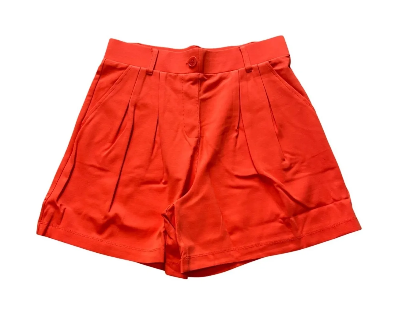 Radiant sophistication arrives in these vibrant orange shorts. Picture yourself stepping out with confidence and flair in these elegantly designed bottoms. The tailored pleats add a touch of refinement, while the high waist creates a flattering silhouette. Thoughtfully placed pockets offer everyday convenience. These shorts bring a polished, contemporary edge to your wardrobe. Pair these with a tucked-in blouse for a chic office look, or dress them down with a casual tee for weekend brunch outings. Color: Orange Department: Women Occasion: Casual, Business, Workwear, Party/Cocktail Character: Retro, Girl, Holly, Jane, Claire Pattern: Solid Rise: High (Greater than 10.5 in) Performance/Activity: Casual, Golf, Pilates, Tennis, Driving Fit: Regular Front Type: Pleated Keywords: Betabrand, orange shorts, pleated shorts, high waist shorts, dress shorts, women's shorts, medium shorts, casual shorts, summer shorts, fashion shorts, stylish shorts, bright shorts, retro