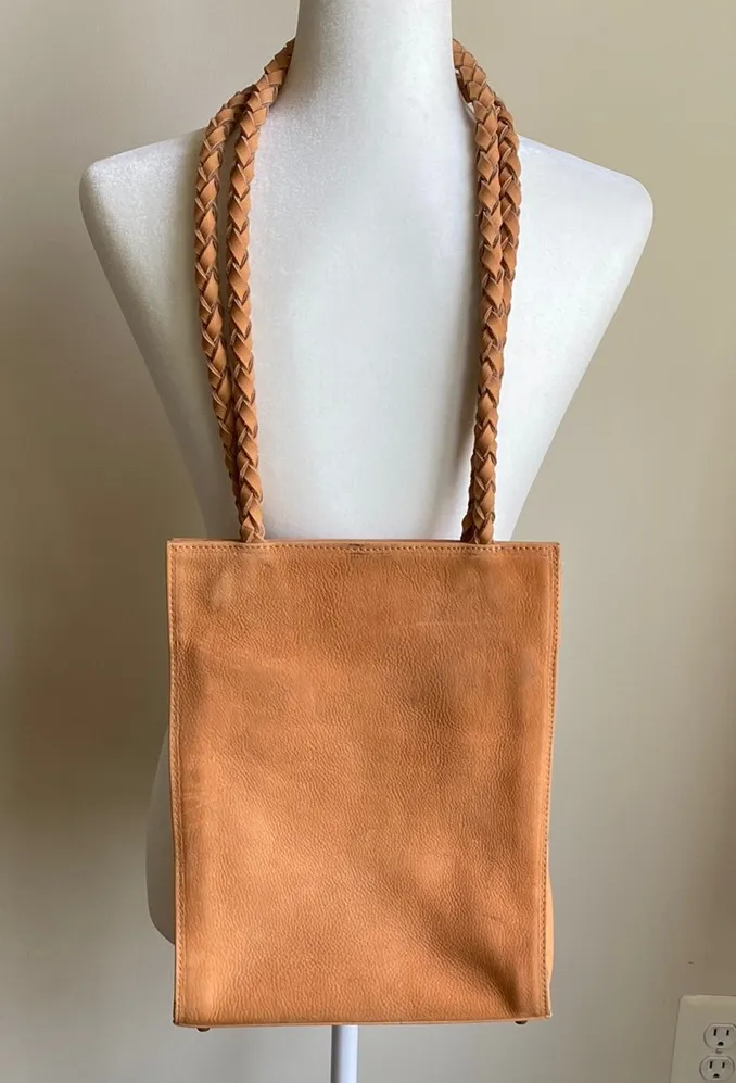 Beth Levine Suede Camel Tall Tote Purse Round Braided Rope Handles Shoulder Bag Tan - $60 - From Becky