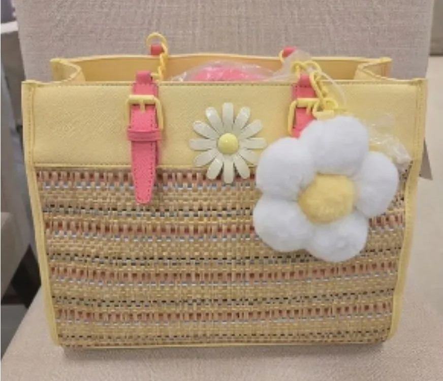 Betsey Johnson XOBECA Tote Detachable daisy pom accent Chain and faux leather carry handles w/ 5.5”... Show more