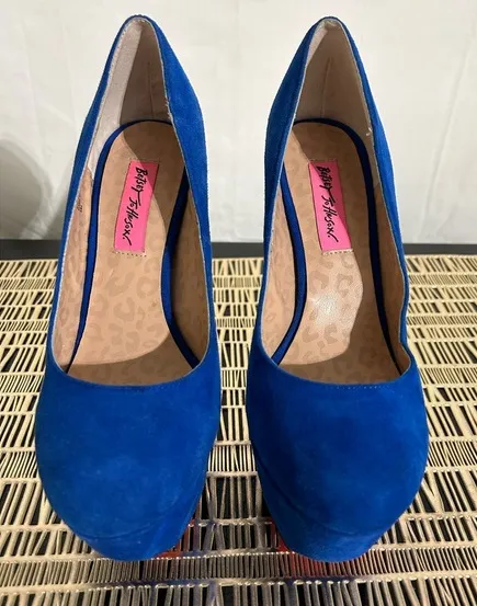 Betsey Johnson Giselle Blue Suede Heels with Hot Pink Sole in a size 6 Blue Suede Heels with Hot Pi... Show more