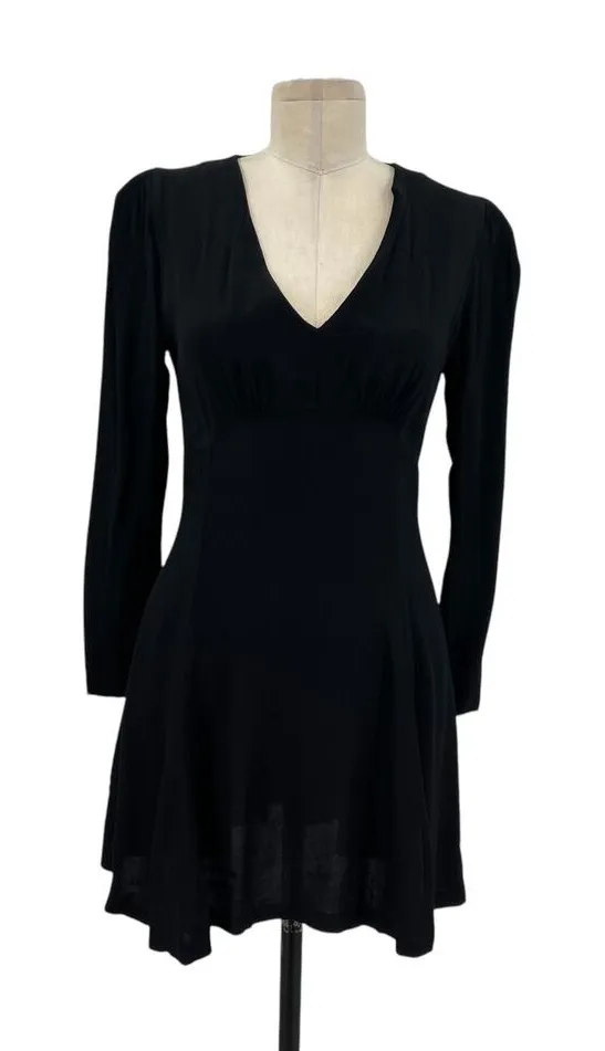 Betsy Johnson Vintage Black Mini Dress Long sleeve mini dress featuring a plunge v-neckline and so... Show more